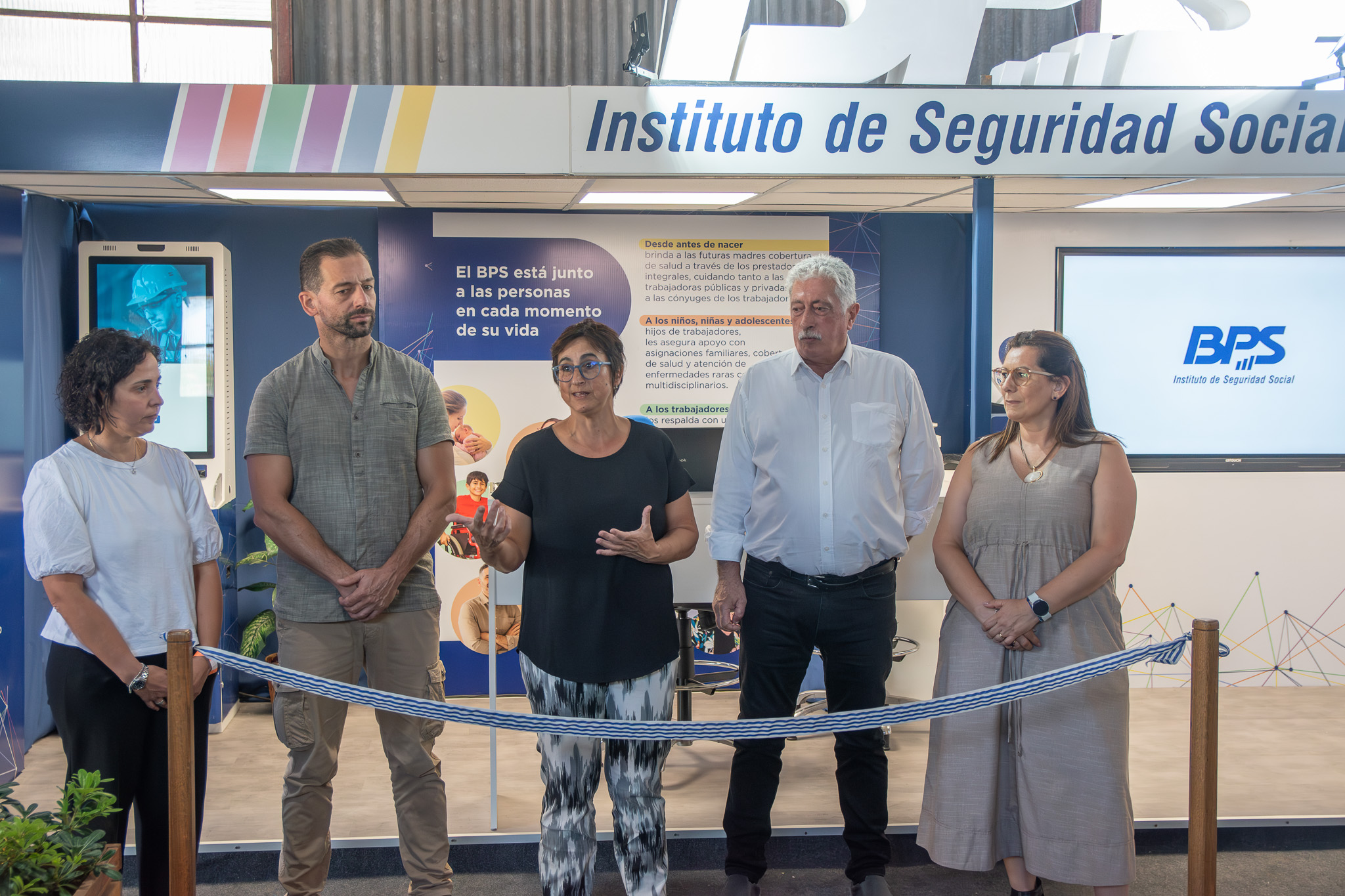 La inauguración del stand del BPS contó con la presencia de la presidenta del instituto Jimena Pardo, el director Ariel Ferrari y el director representante del sector trabajadores Carlos Clavijo, entre otras autoridades del organismo.
